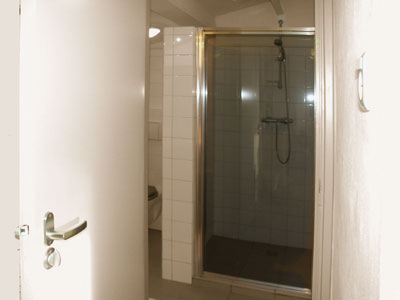 In de badkamer zijn een wc, een wastafel met warm en koud water en een douchecel -